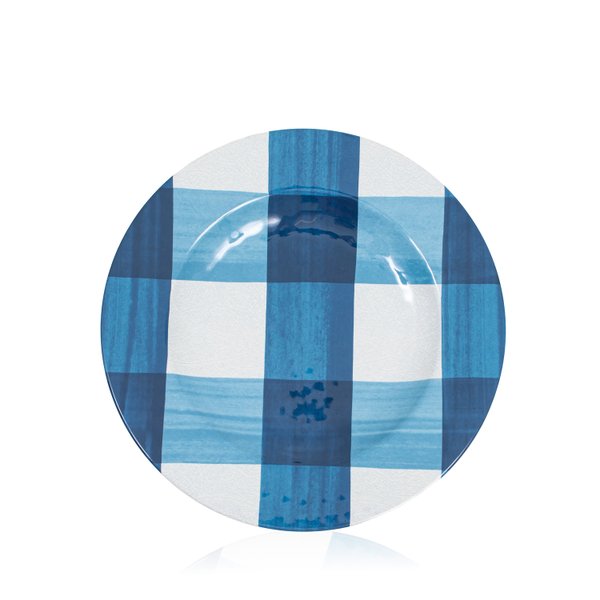 Conjunto 6 Prato Sobremesa Melamina Xadrez Azul 22cm
