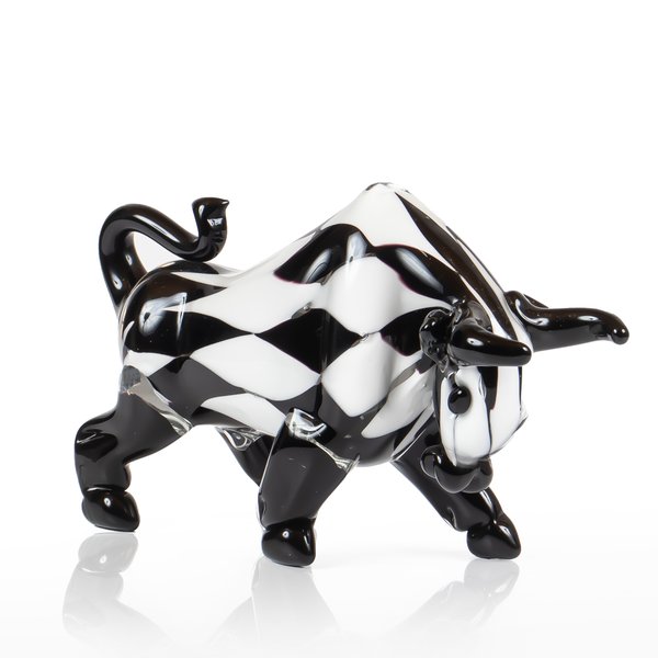 Adicione imponência, elegância e um toque de arte à sua decoração com o Touro em Cristal de Murano na cor Preto e Branco xadrez.