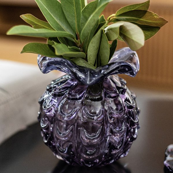 O brilho intenso e a profundidade da cor ametista no cristal destacam essa peça em qualquer composição, tornando-a um verdadeiro clássico da decoração.