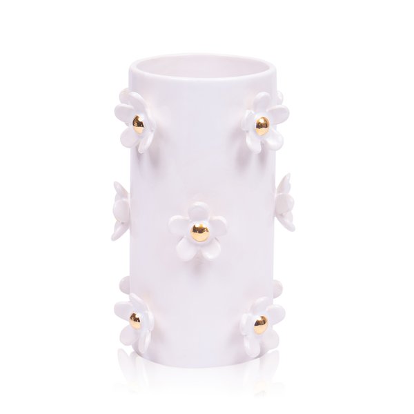 Vaso Dayse Gold Cerâmica Branco