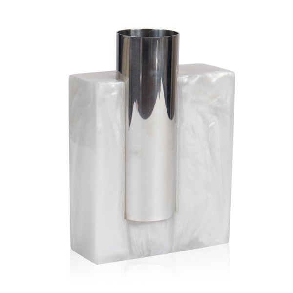 Vaso Metal Bloco Cromado Resina Branco Polido