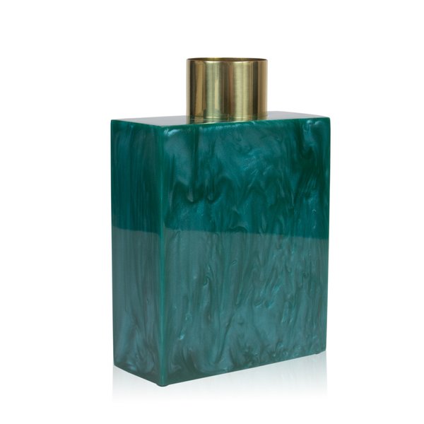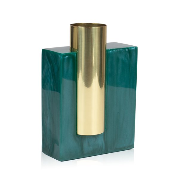Vaso Metal Bloco Dourado Resina Verde Polido