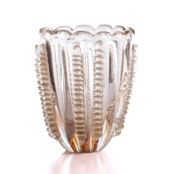 O Vaso Murano modelo Àquila, na sofisticada cor transparente com pó de ouro, é uma peça de destaque absoluto para quem valoriza autenticidade, luxo e sofisticação.