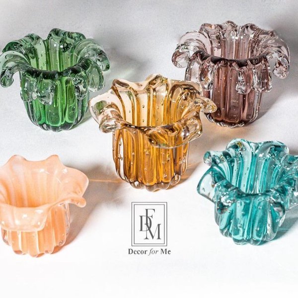 Com acabamento artesanal e formato diferenciado, o murano babado é perfeito para compor ambientes que prezam por exclusividade e bom gosto, seja em pequenos espaços ou em composições decorativas refinadas.