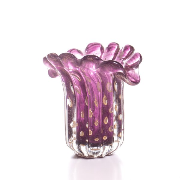 Vaso Murano Leque Ametista C/ Ouro