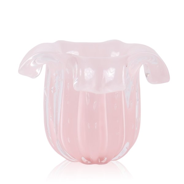 Valorize sua decoração com o Vaso Murano Salvador, uma peça sofisticada de cristal de Murano que se destaca pelo design moderno e as bordas viradas, conferindo um charme singular e artístico.
