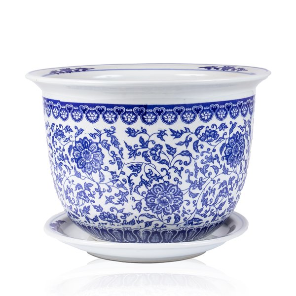 Vaso Porcelana Azul e Branco "G" com Prato