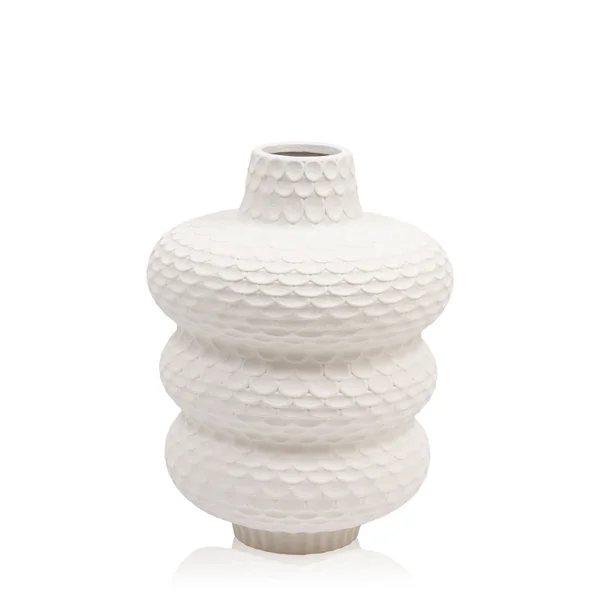 • 01 - Vaso Redondo Cerâmica Texturizado Branco 25 Cm